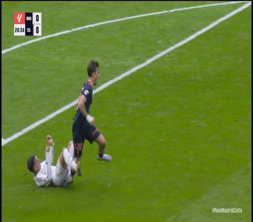 体育资讯05月04日报道宣称 西甲第34轮,皇马vs塞尔塔。比赛第26分钟,姆巴佩挑传,巴斯克斯铲射结果将罗德里格斯踢倒在地,后者表情十分痛苦,裁判吹了巴斯克斯犯规。