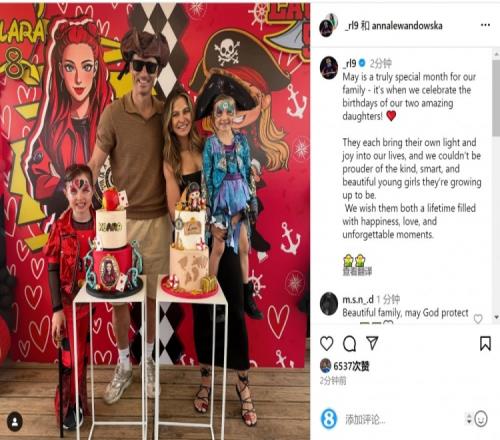 体育资讯5月4日报道宣称 莱万更新社媒动态,为两个女儿庆生。