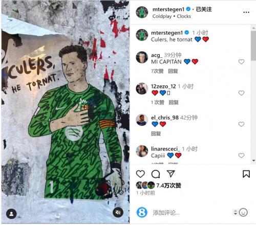 特尔施特根在社交媒体上写道:“巴萨球迷们,我回来了!”