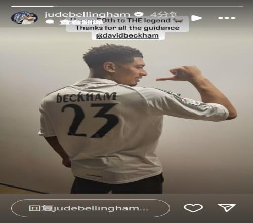 体育资讯5月2日报道宣称 在个人社媒,贝林厄姆为贝克汉姆送上生日祝福。