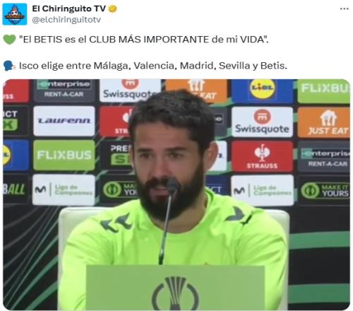 体育资讯05月01日报道宣称 欧协联半决赛首回合,贝蒂斯将对阵佛罗伦萨。贝蒂斯中场伊斯科出席赛前发布会,西班牙六台断章取义伊斯科的言论,遭到球员本人怒喷。