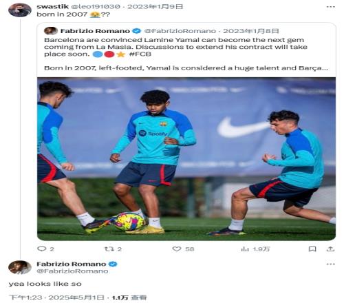 真天才!罗马诺23年1月发文报超级天才亚马尔,网友震惊07年的