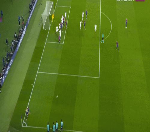 当发现巴萨球员进入状态较慢时,国际米兰敢于投入较多的兵力参与进攻,不仅是两名边翼卫屡屡深入前场,两名边中卫也出现在了前场肋部,这让他们获得了角球进攻的机会。作为一支在运动战中极度依赖传中的球队,国际米兰的定位球进攻能力自然是不在话下,这种优势在面对巴塞罗那的防线时得到了进一步放大。