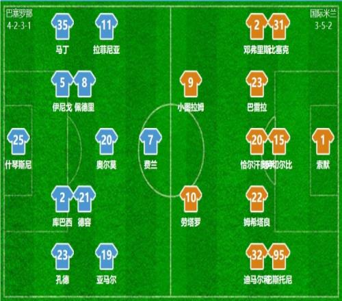 巴塞罗那方面的首发阵容没有太多秘密可言,弗里克沿用了上周末国王杯决赛时的先发11人。本场比赛的备战阶段,帕瓦尔和马库斯-图拉姆的伤势牵动人心,前者没能赶上首回合比赛,老将达米安已经很难适应这种强度的比赛,比塞克尽管近期失误较多,但依然获得了在诺坎普首发登场的机会。马库斯-图拉姆最终还是跑赢了时间,这是国际米兰能够成功抢开局的关键。
