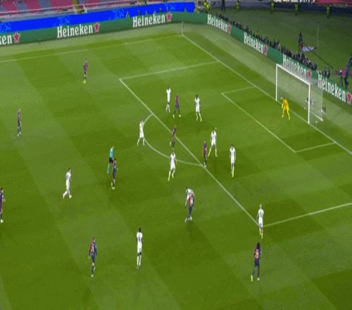 老将莱万多夫斯基担任首发时,弗里克会要求边锋引领压迫,边后卫就要顺势前移,这样做会在后场的两翼留下较大的空间。费兰-托雷斯与奥尔莫搭档时,巴萨便可以由“双前锋”突前施压,这既能在前场形成严密的网络,也不会在后场给对手可乘之机。拉菲尼亚可以与费兰-托雷斯、奥尔莫等人自由换位,防守球员很容易在他们的反复冲击与拉扯下疲于奔命。