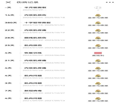 阿拉巴2021年夏窗免签皇马,合同将在明年夏天到期。阿拉巴在2023年12月遭遇左膝前十字韧带撕裂重伤,直接错过欧洲杯,伤缺了399天。加上前后大大小小的伤病,阿拉巴在皇马病床上待了接近两年。