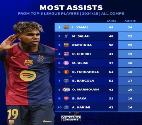 对巴萨来讲,在大赛中的主要机会来源,肯定是亚马尔提供的。虽然年轻,不过他的实力的确是很出色,在巴萨本赛季就是“大哥级”的水准,这是毋庸置疑的。