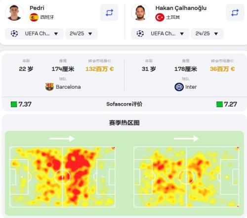 对比有没有佩德里时德容的表现,你就能知道佩德里对队友的帮助有多大。