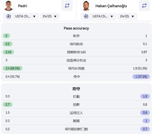 除了这个问题,亚马尔及其他的队友们在锋线端可也是被给出了防守任务的,事实证明他们完成的很不错。场均26次的前场夺回球权数据,在西甲排名第6、在欧冠排名第4,这的确不是豪门级球会“该交出”的数据。