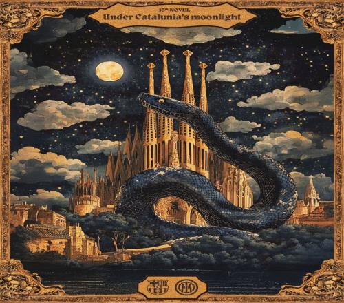 国米海报以球队图腾灵蛇为基调:月圆之夜,灵蛇现身巴萨圣家教堂。