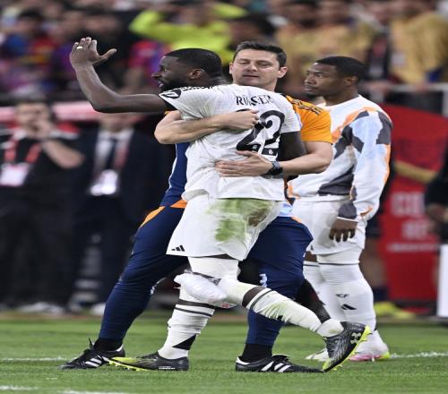 1.裁判报告"驱逐出场"章节记录:"皇家马德里:第120+4分钟22号球员安东尼奥-吕迪格因以下原因被驱逐:从技术区投掷物品(未击中本人)。出示红牌后需多名技术团队成员阻拦,期间持续表现攻击性态度"