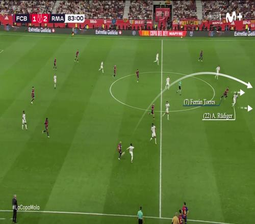 比如,想想周六的国王杯决赛,以及他创造的两个进球。第一个进球是佩德里进的,他把防守球员逼到门线上,然后把球传回禁区边缘。第二个进球是给费兰-托雷斯的长传。你有没有注意到,当时亚马尔传球时,防守球员离他有多近,而他获得的空间又有多小?真是不可思议!