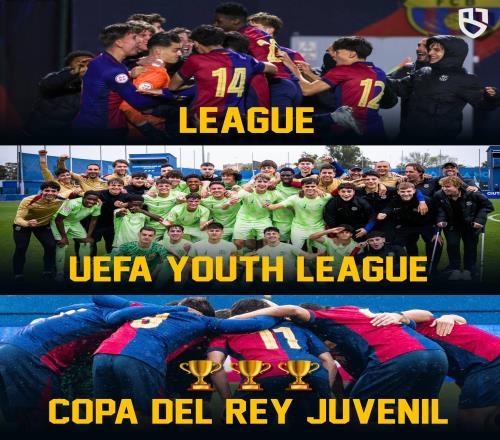 本赛季,巴萨U19青年队收获满满,他们夺得了青年国王杯、青年联赛、青年欧冠的三冠王。