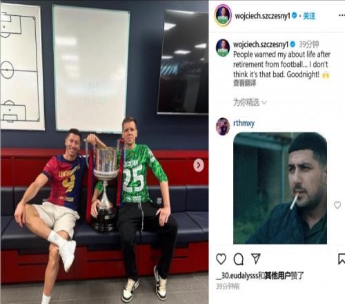 什琴斯尼晒与莱万、国王杯奖杯合照:感觉退役后的生活也没那么糟
