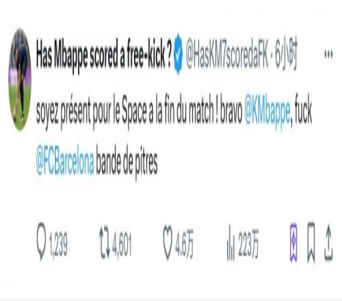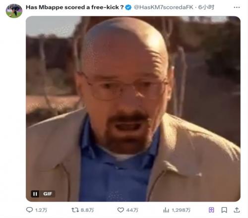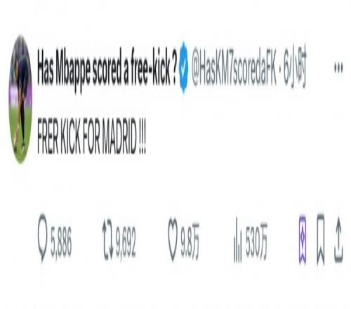 姆巴佩直接任意球破门!天塌了!!!(该推文已接近1300万点击量)↓
