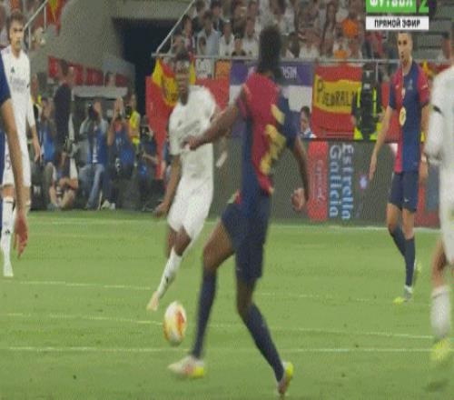 过去两次西班牙国家德比,皇马都是利用姆巴佩的速度直接突防,战术思路简单直接但非常有效。姆巴佩在本赛季西甲赛场已经有过39次越位,比其他任何球员都要多18次,首回合国家德比时的8次越位可谓是触目惊心。缺少姆巴佩在阵型顶端的扯动与压制,皇马只能依靠维尼修斯和罗德里戈的盘带来推动反击,巴萨有充裕的时间进行回防和围抢,这是白衣军团上半场只捞到1次射门的原因所在。