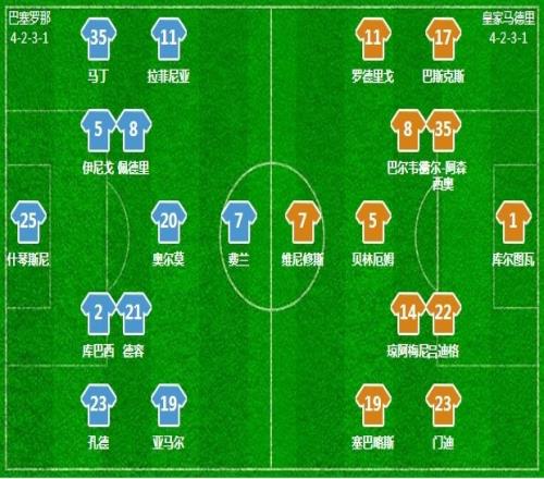 犯规次数只有对手的一半(11-21),黄牌数甚至更少(3-4),枯燥的数据无法充分体现出比赛的激烈程度,皇马球员多次在比赛中采取超常规动作限制巴萨球员的突击,这是部分位置球员单防效果欠佳,以及整体跑动能力不足情况下的无奈之举。前场无法有效地实施反制,也间接地导致后场球员压力增大,吕迪格、库尔图瓦和莫德里奇等人连续出现致命失误不是偶然。