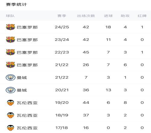 费兰-托雷斯各赛季参与进球数据