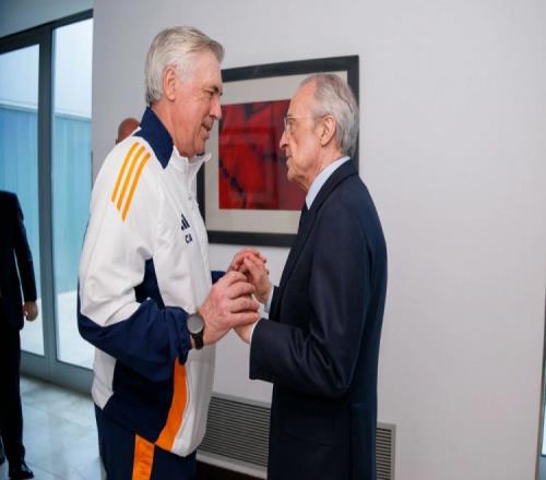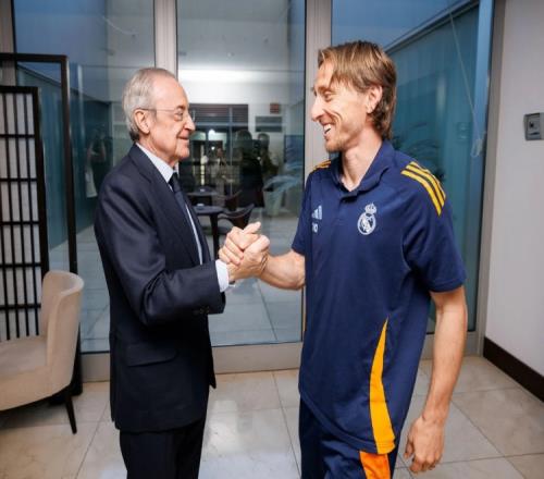 体育资讯4月26日报道宣称 皇马官网消息,在国王杯对阵巴塞罗那的比赛前,皇马主席弗洛伦蒂诺看望了球员和教练组。