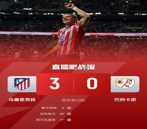 体育资讯4月25日报道宣称 在第33轮西甲联赛,马竞主场3-0战胜巴列卡诺。但本场比赛马竞主场只有49410名球迷现场观战。