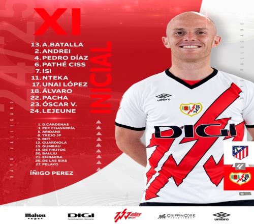 巴列卡诺首发:13-巴塔拉、2-拉提乌、4-佩德罗-迪亚斯、6-西斯、7-帕拉松、11-恩特卡、17-乌奈-洛佩斯、18-阿尔瓦罗-加西亚、22-埃斯皮诺、23-瓦伦丁、24-勒戎
