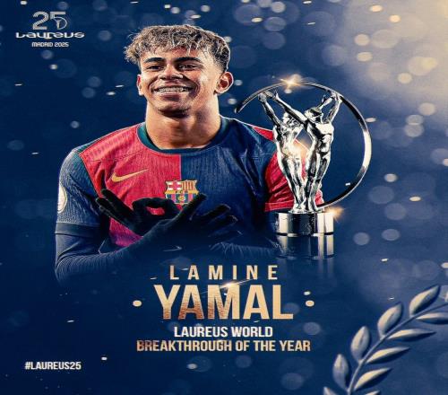 体育资讯4月23日报道宣称 巴萨球员亚马尔在获得2025年劳伦斯世界体育奖的年度最佳突破奖后,发表了获奖感言。