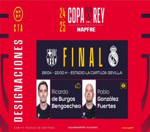 西班牙足协公布了国王杯决赛的裁判安排,主裁为本戈埃切亚,VAR裁判为富埃尔特斯。