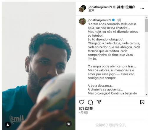体育资讯4月21日报道宣称 36岁巴西前锋若纳塔斯更新社媒动态,宣布结束职业生涯。
