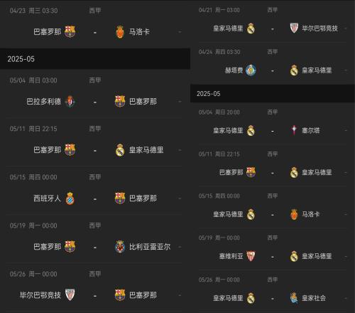 巴萨皇马剩余赛程