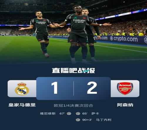 体育资讯04月17日报道宣称 欧冠1/4决赛次回合,皇马1-2不敌阿森纳遭遇双杀,欧冠出局。