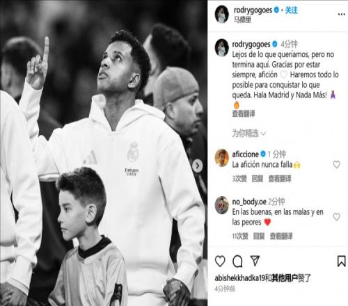 罗德里戈写道:“虽然这远未达到我们的预期,但这还不是终点。感谢你们一直都在,亲爱的球迷们。我们会竭尽全力去争取剩下的一切。”