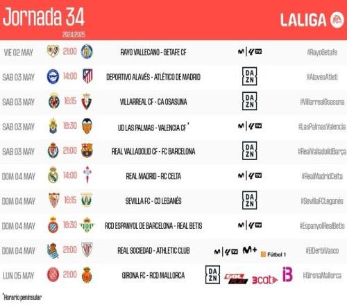 西甲第34轮开球时间变更:巴萨5月4日3点,皇马5月4日20点