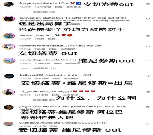 赛后,皇马社媒的战报遭遇了大量球迷的恶评,许多人将矛头指向了安切洛蒂、维尼修斯、阿拉巴等人。部分内容如下。