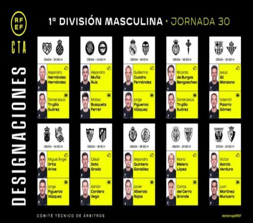 西甲第30轮裁判: