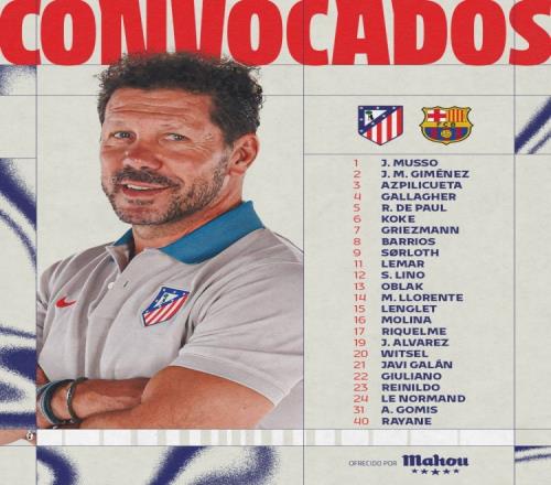 马竞对阵巴萨大名单:阿尔瓦雷斯、格列兹曼领衔,科雷亚停赛缺席