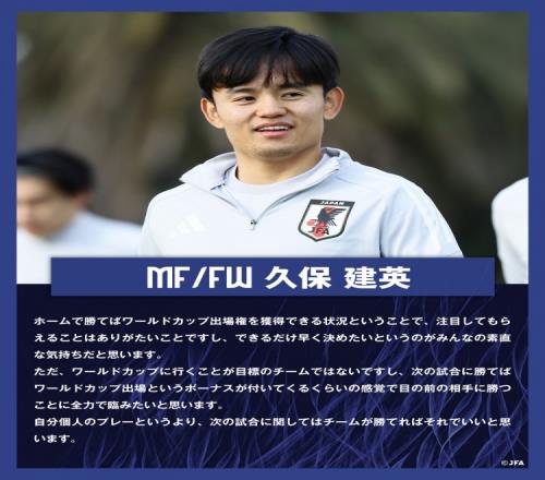 体育资讯3月19日报道宣称 今日,日本国家队官推更新,晒出了久保建英在昨日训练结束后接受采访的相关内容。