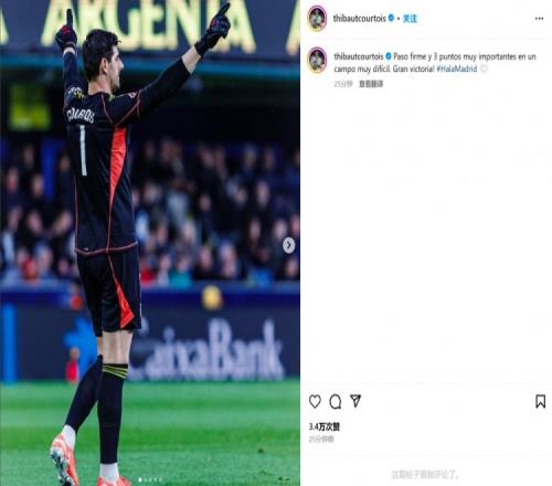 库尔图瓦社媒:在艰难客场迈出坚定一步并取得3分,很棒的胜利!