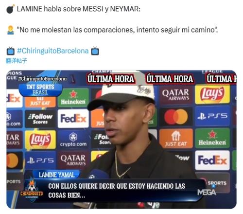 亚马尔:没错,打小我就是他的球迷。特别是他在巴萨和巴黎踢球那会儿...