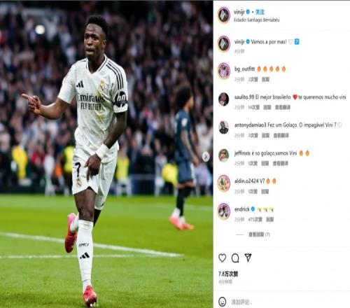 维尼修斯社媒庆祝胜利:让我们继续前进赢得更多!