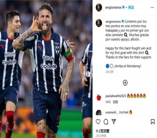 赛后,拉莫斯更新社媒庆祝,他写道:“为这场艰苦的胜利和穿上这件球衣的第一粒进球感到开心,感谢球迷们的支持。”