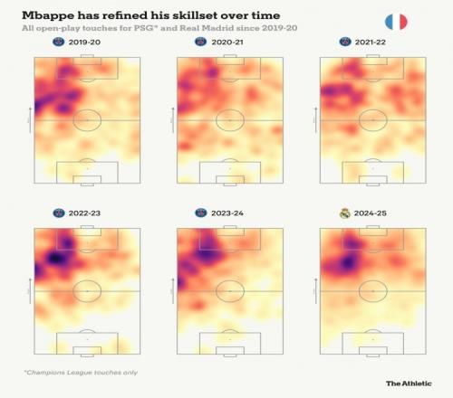 姆巴佩向更传统的中锋演变,则是在他转会到皇马之后,进入了快车道。