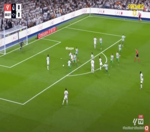 姆巴佩在9月皇马2比0击败皇家贝蒂斯的比赛中攻入了第一粒进球,这表明他现在多大程度上开始充当禁区掠夺者的角色。