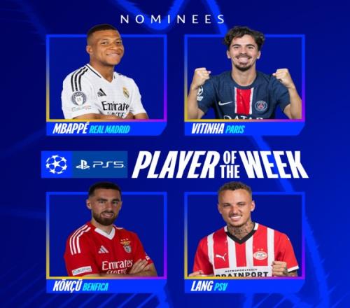 欧冠周最佳球员候选:姆巴佩领衔,维蒂尼亚、诺阿朗、科克库入选