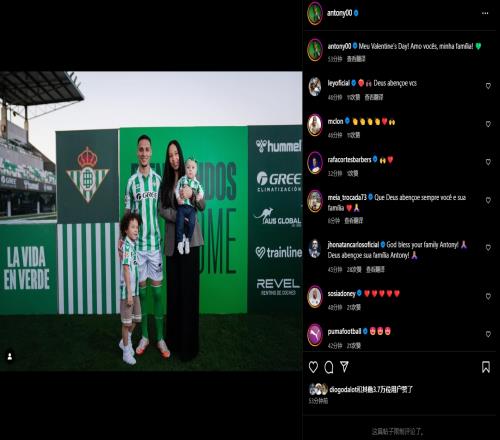 贝蒂斯边锋安东尼在社媒晒出了自己与家人们的合照,配文道:属于我的情人节!我爱你们我的家人!