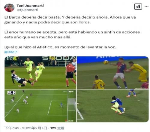 体育资讯2月7日报道宣称 巴萨跟队记者Toni Juanmartí更新社媒动态,晒出巴萨本赛季遭到误判的视频截图,并表示巴萨应该发声。