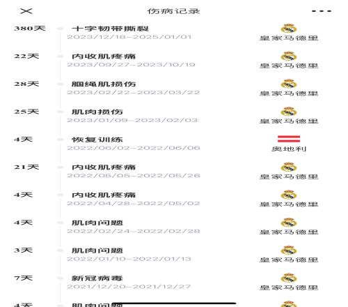 阿拉巴在皇马的伤病史↓