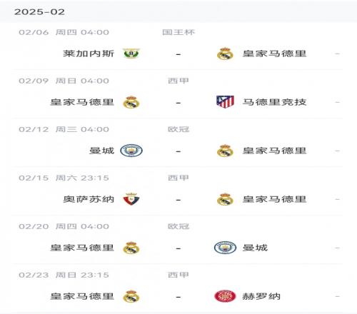 皇马2月魔鬼赛程↓