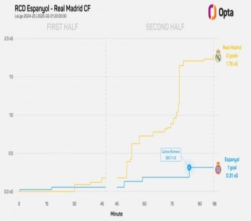数据统计显示,皇马连续31个西甲客场都能取得进球的纪录也被终结。