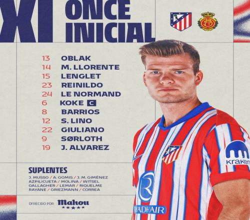 西甲马竞vs马洛卡首发:阿尔瓦雷斯领衔出战,格列兹曼替补