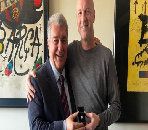巴萨俱乐部前几天举办了俱乐部会员勋章颁发活动,小克鲁伊夫没有出席,不过目前巴萨主席拉波尔塔亲自向他颁发了勋章。